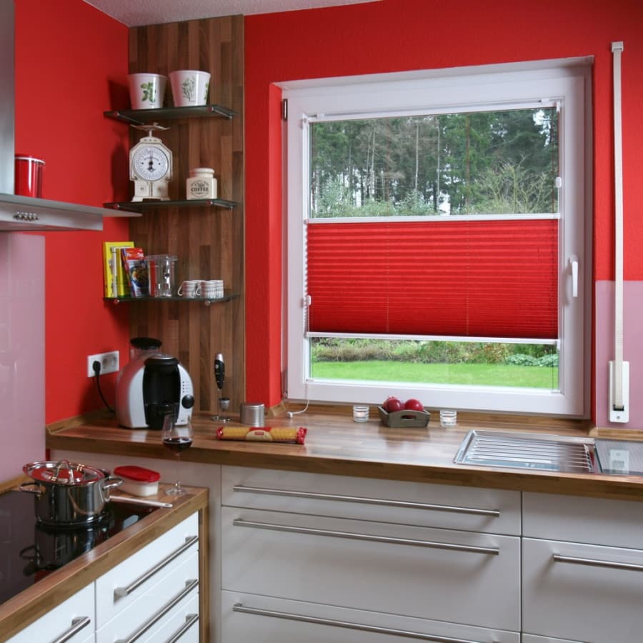 - Минимальный вынос. Благодаря тонким профилям шторы плиссе монтируются вплотную к стеклу (в штапик), не мешая открыванию дверей или створок.